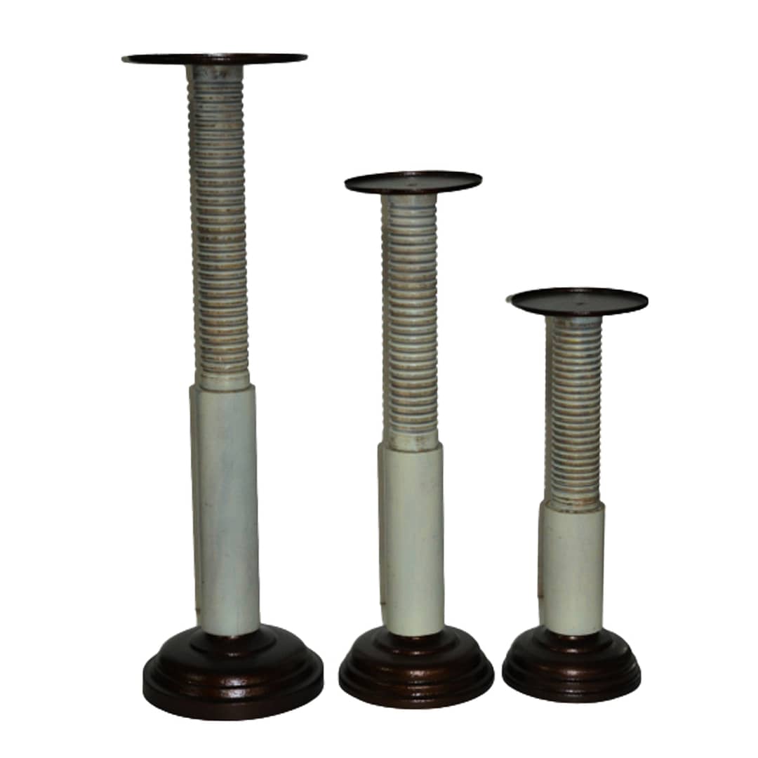 ANTIQUE WOODEN & IRON CANDLE HOLDER quantity