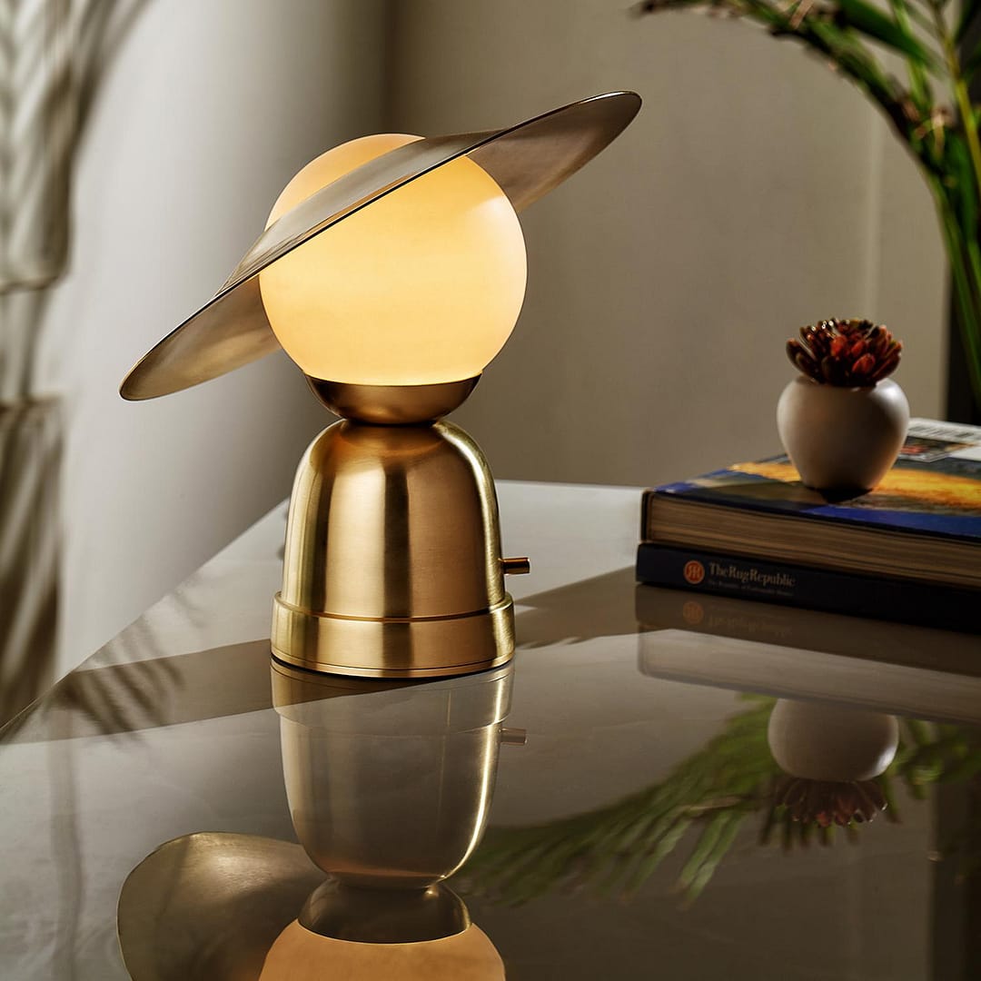 - Made with aluminum alloy, this table lamp is a unique curation with a signature ring-shade or a lamp hat, which is detachable, that makes it an object of desire and admiration in your home.
